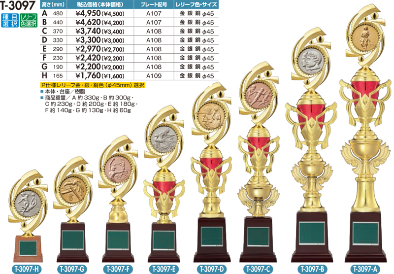 P仕様(樹脂製レリーフ)Φ45mm 金・銀・銅から選択可能です。